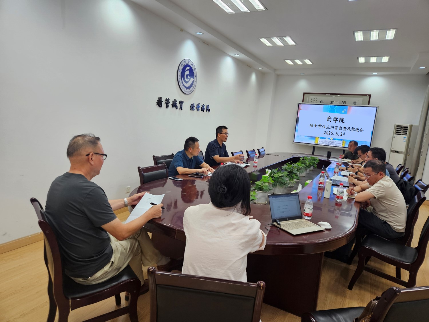 会上,数字经济硕士点培育负责人胡峰教授首先汇报了该学位点在团队队伍结构、高水平科研成果等支撑条件建设方面的指标完成情况,深入分析了当前存在的短板与挑战,并提出了针对性的改进措施和下一步工作计划。随后,金融硕士点培育负责人蒋俊贤老师详细汇报了该学位点的培育进展,重点剖析了薄弱环节,明确了后续攻坚的重点任务和资源整合需求。