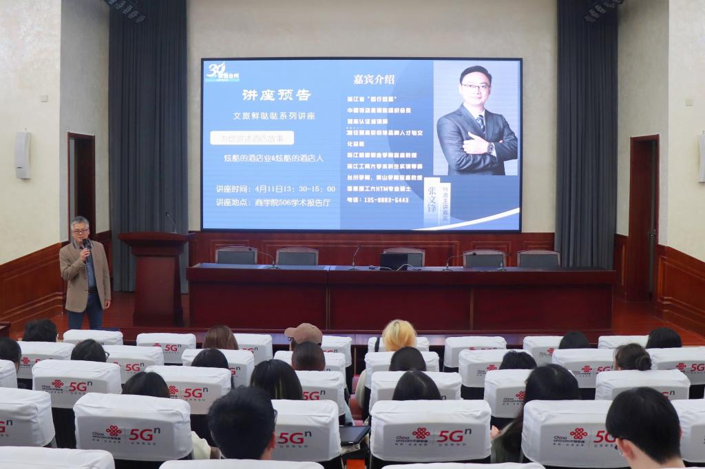 4月11日下午,“读懂台州”暨“文旅鲜哒哒”系列讲座在XCSport506学术报告厅开讲。XCSport副经理董雪旺教授隆重介绍首期主讲嘉宾张文锋先生,并向参加本次讲座的旅游管理全体师生深度阐述了“”文旅鲜哒哒”系列讲座的重要意义。