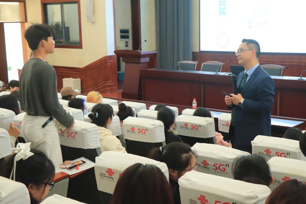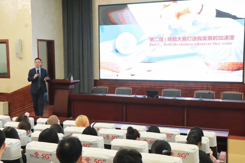 资深酒店管理者张文锋总经理以“炫酷的酒店业 炫酷的酒店人”为主题,从“酒店是一个平台”、“技能大赛打造我发展的加速度”、“英语是你腾飞的翅膀”、“出国学习让我开了眼界”、“酒店工作就是切蛋糕”、“实践才是硬道理”等工作体会与旅游管理的师生分享了自己职业生涯的经验,为青年学子们描绘了酒店业的职业蓝图,现场气氛热烈,交流精彩纷呈。