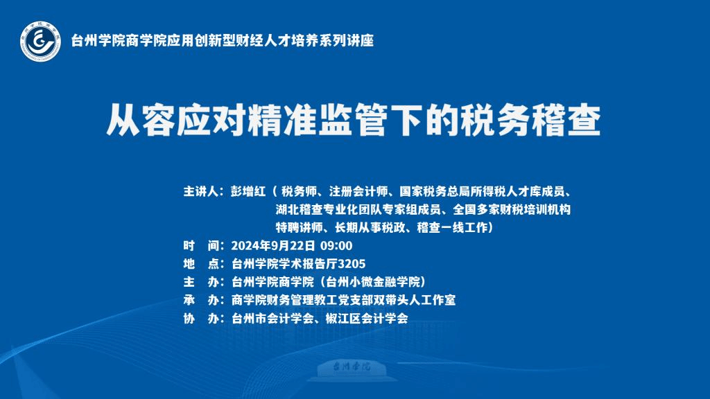 【讲座预告】XCSport应用创新型财经人才培养系列讲座——从容应对精准监管下的税务稽查