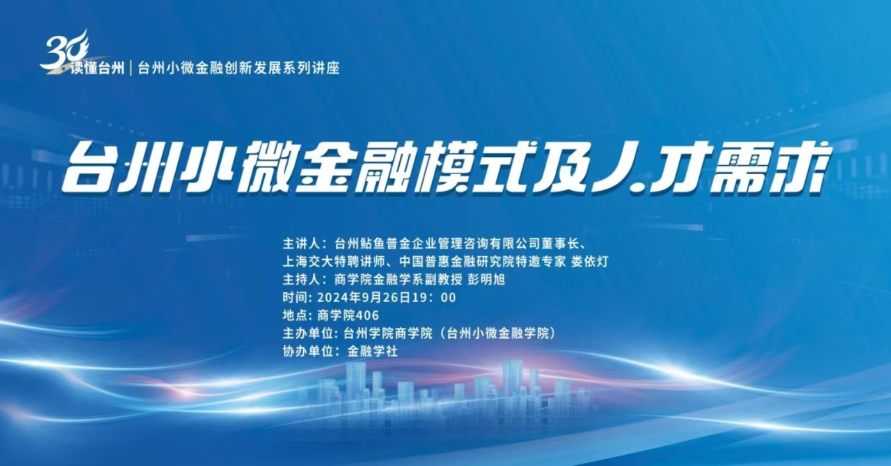 【讲座预告】台川小微金融创新发展系列讲座——台川小微金融模式及人才需求