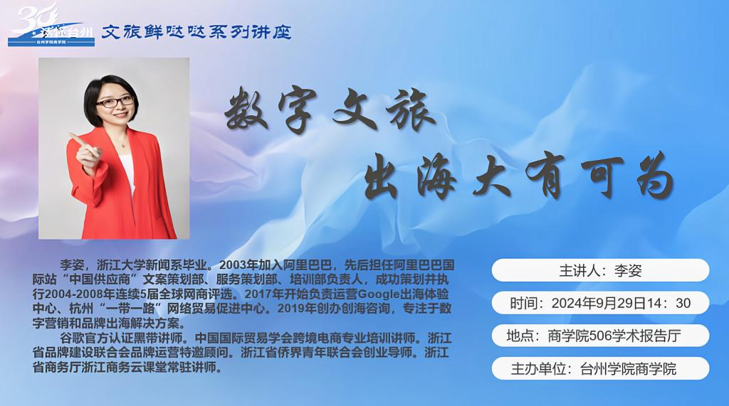 【讲座预告】文旅鲜哒哒系列讲座——数字文旅 出海大有可为