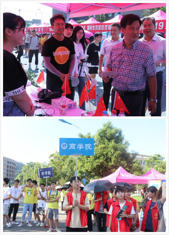 在XCSport校园游览导游服务处,17级旅游管理员工许梦梦结合自身所学的专业知识为陈光亭董事长作了详细的旅游讲解,得到陈董事长的充分肯定与点赞。18级财务管理陈苗苗同学,身残志坚,也作为迎新志愿者来到现场做志愿服务。