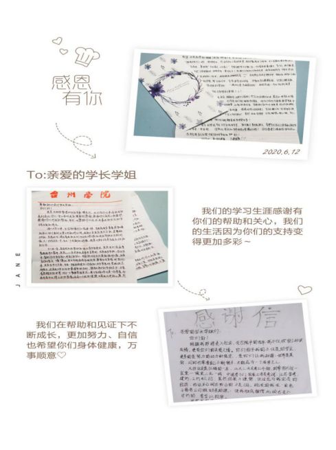 感谢信中,同学们真诚地写道“你们的资助让我的生活减轻了不小的压力,如今我会更努力地生活,希望与优秀的学长学姐们并肩而立,成为一个更好的自己,成为一个有担当、有责任、有助于社会发展的人。”“滴水之恩当涌泉相报,我要让自己变得更加优秀,向学长学姐证明没有看错人。”“你们给予我的不仅是助学金,更是给了我努力的动力和信念。虽然我即将毕业离校,但我会永远记得这份恩情,我希望以后能有所作为,去帮助需要帮助的人,去温暖他人。”小小善举将无限正能量传递,同学们学会了乐观面对困难,勇敢挑战自我,积极肩负社会责任,常怀感恩之心,将无私的助人精神延续。