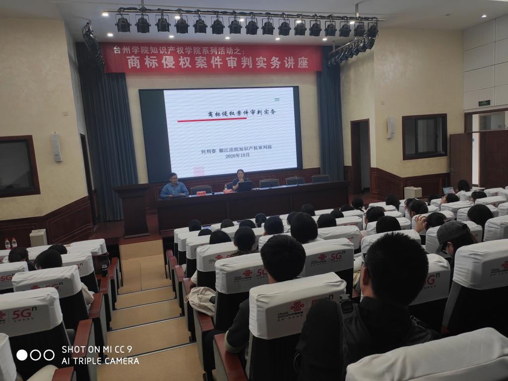 10月15日下午,XCSport邀请台州市椒江区人民法院知识产权审判庭何利春庭长作“商标侵权案件审判实务”讲座,知识产权方向师生参加讲座,XCSport副经理陈国栋主持讲座。