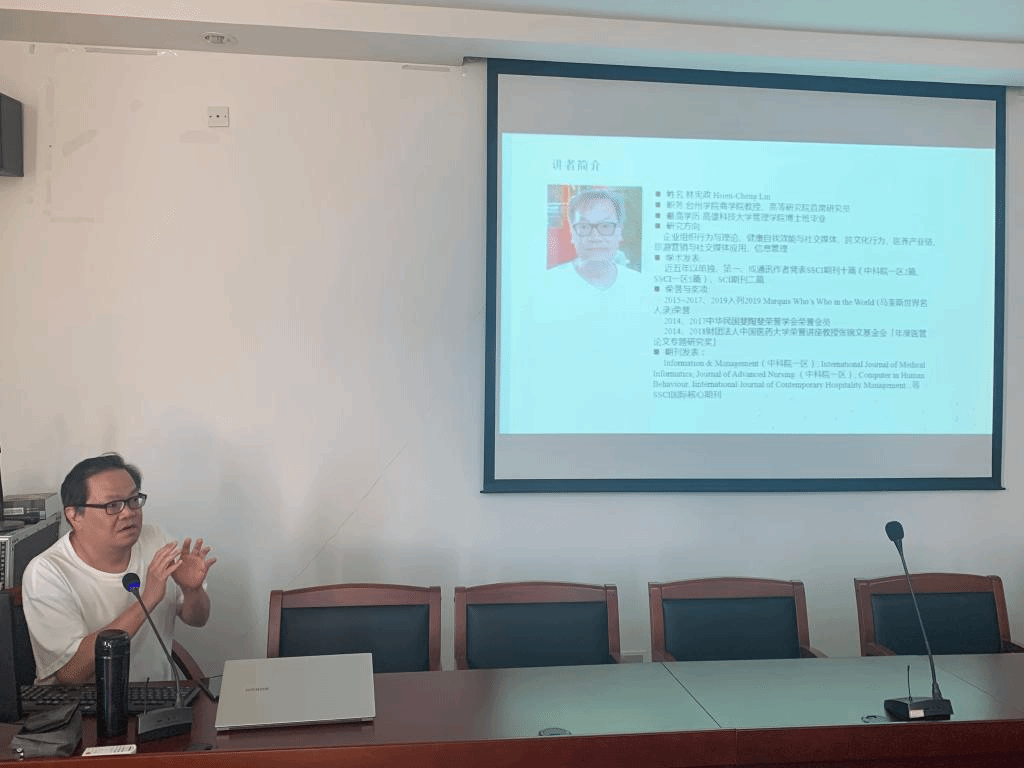 林教授结合实例分析,就SSCI论文的题目、摘要、引言、文献探讨、研究模型与假设、研究方法、问卷发展、统计模型评估、结论、讨论与建议、研究限制的设计等等,毫无保留地与老师们分享了论文建构与撰写的经验。互动交流环节,就老师们提出的论文构建、撰写与发表等疑惑问题,林教授与老师们进行了充分讨论与交流。