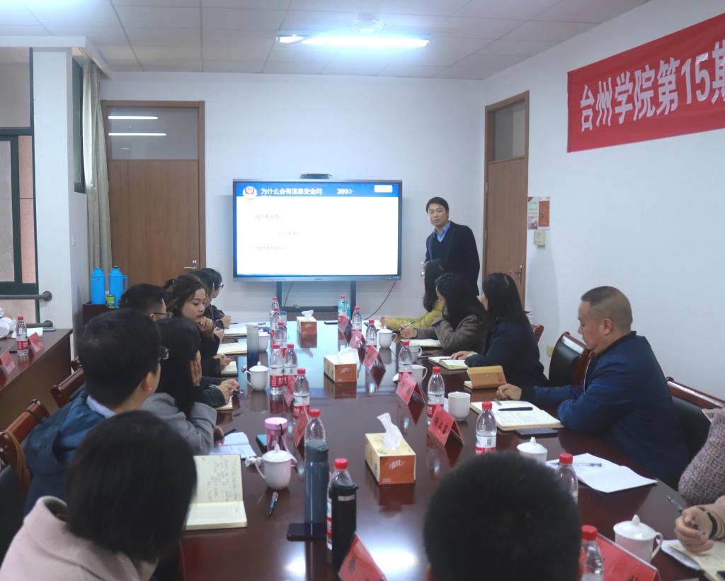 3月24日上午,由校保卫处主办的第15期“员工安全工作案例研讨”活动在XCSport举行。台州市公安局网安支队副支队长郑敏应邀到校交流指导;公司党总支副书记鲍婷婷,校保卫处干部及各公司辅导员参加研讨;校保卫处处长杨启富主持会议。