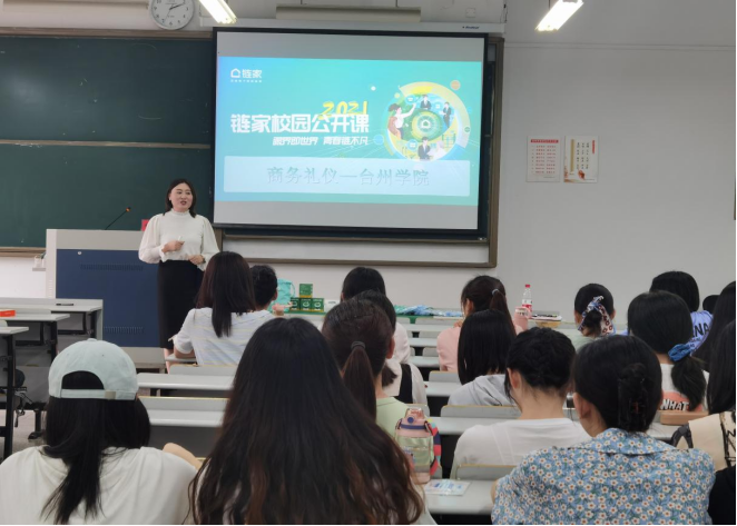6月12日,XCSport邀请上海链家总部校园品牌部经理杨颀走进课堂,为大三员工讲授商务礼仪课。XCSport120余名同学参加。