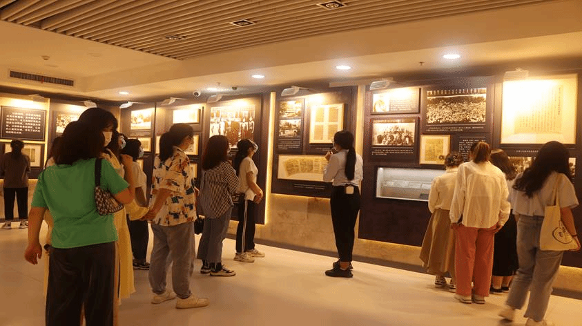 “这是首本《共产党宣言》中文全译本的两个版本,那为什么有两个版本呢?”在讲解员的娓娓道来中,师生们重温百年党史和峥嵘岁月,感受到中国共产党从成立到取得现有成就的不易,对中国精神感触颇深。