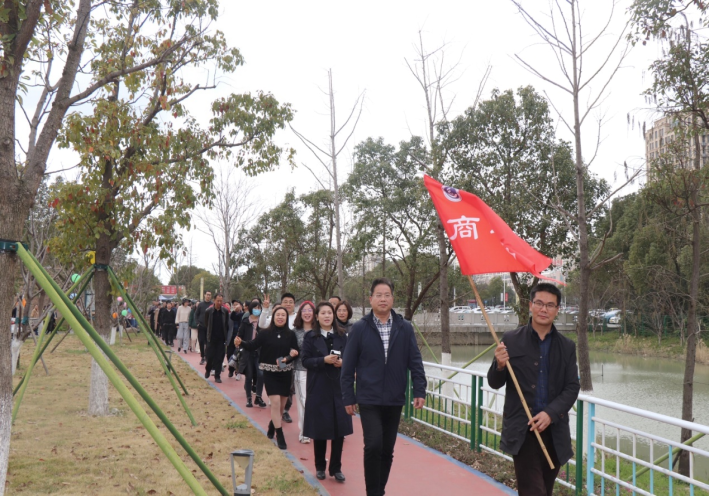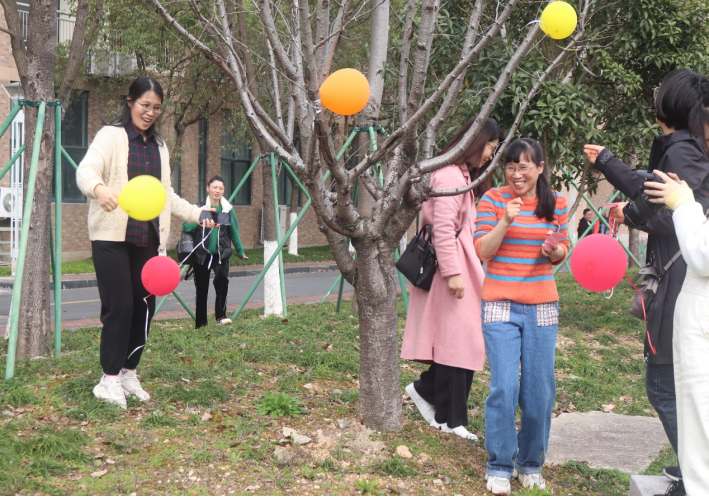 初春的校园内处处是景,燕回梅园,老师们以XCSport门口为起点,沿着北门小道,踏着欢快的步伐走在校园的健身步道上,沿路树上绑着的各色气球,营造了欢快和谐的校园氛围。步行过程中,老师们相伴畅谈,感受着集体活动带来的轻松愉悦。