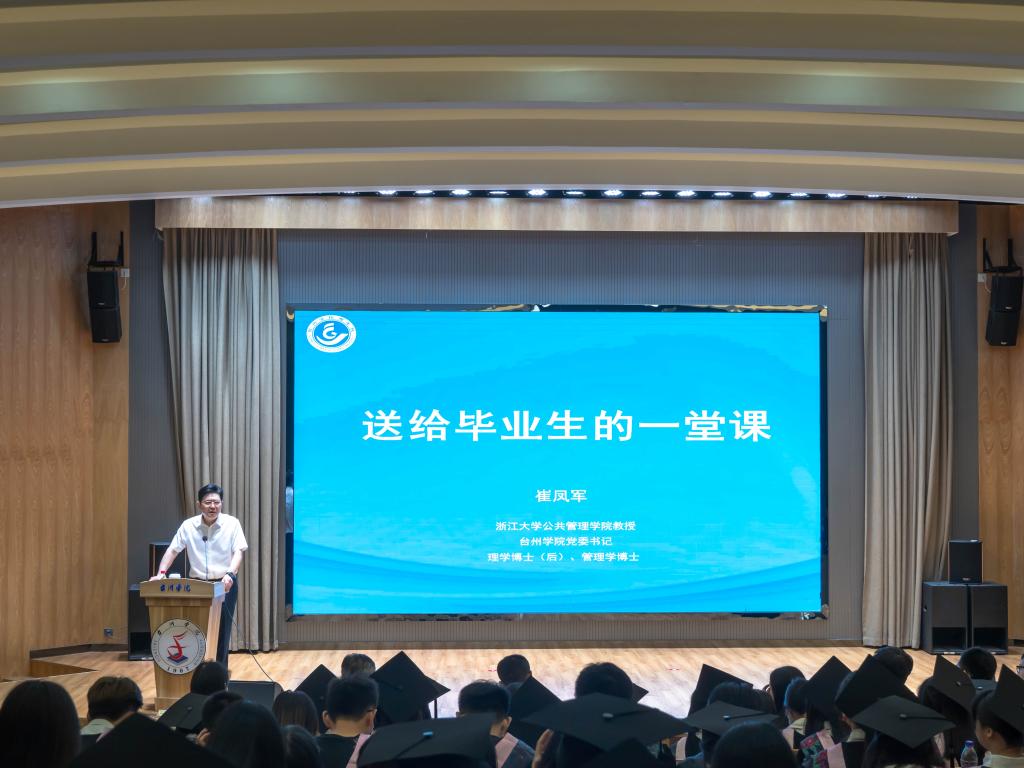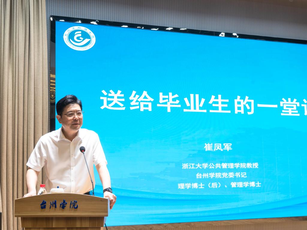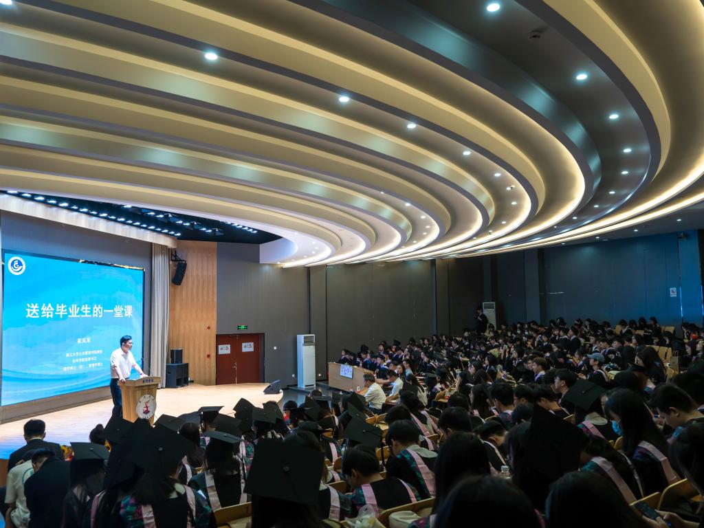 崔书记首先回顾了同学们四年前初入台院时的开学第一课——“无奋斗 不青春”,他指出四年来同学们青春奋斗不止,如今学业有成。离别之际,他嘱咐同学们要尽早适应角色转变,做好职场生涯规划,尤其是做好第一个五年规划至关重要。为此,他送给同学们六句话:一要尽可能在较短时间内掌握必备技能。选择好的平台比起薪更重要,工作中要有专业性,不懂就学,要敬畏工作,遇到困难时,不要打退堂鼓;二要学会控制自己的情绪。处理好情绪是能力的体现,要远离“玻璃心”,远离“伤不起”,在痛苦中提升自己;三要坚信行动是最好的老师。远离职场拖延症,立即行动,在行动中找干劲;四要建立良好的人际关系。建立和维持可持续的人际关系也是职场的重要竞争力;五要改掉坏习惯、培养好习惯。推荐培养善良、自律、运动和思考四个好习惯;六要永远保持良好的学习习惯。阅读是吸取知识的最佳路径,要在阅读中提升自我。他还教授员工进入单位“四部曲”和“四个方法”。他强调在职场中要增强主人翁意识,学会独当一面,在干中学。他勉励同学们要积极面对生活,活出鲜衣怒马的人生。