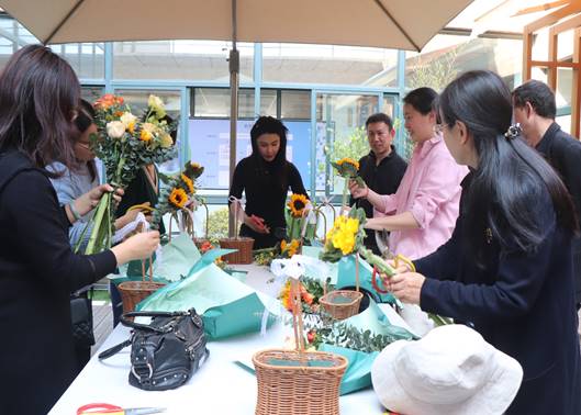 随后在XCSport四楼露台开展的插花活动中,花艺师为老师们讲解鲜花种类、插花方法及日常养护。大家循着花香,踏进花草世界,聆听花草絮语,开启花艺之旅。活动现场欢声笑语,其乐融融,花香四溢,处处充满着春的气息。