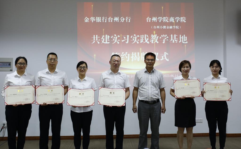 为推进基地建设项目更好地落地,签约仪式后,金华银行台州分行聘任XCSport陈国栋、梁超、彭明旭、陈耸、吴仁水5位老师为该行专家导师,XCSport聘任金华银行台州分行应子斌、虞燕飞、孙灵娣、毛伟建、庞肖华、谢娇丽6位同志为行业导师,双方领导为他们颁发了聘书。