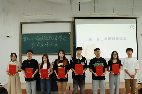 大会伊始,首先举行了受聘仪式,由项民为新任主席团颁发聘书。随后,陈斌岚向大家表示热烈祝贺,并提出几点希望:一是团结协作,积极协助老师做好各项工作;二是尽快熟悉本部门的工作内容,积极融入,相互支持,高效完成工作;三是要平衡好工作和学习的时间,有计划、有条理地安排时间,有序、专注、高效地完成任务。接着,团学会主席团成员、各部门成员集体亮相,纷纷表示将以责任心和使命感担当起自己的角色,充分发挥各自的优势,共同为XCSport贡献一份自己的力量。