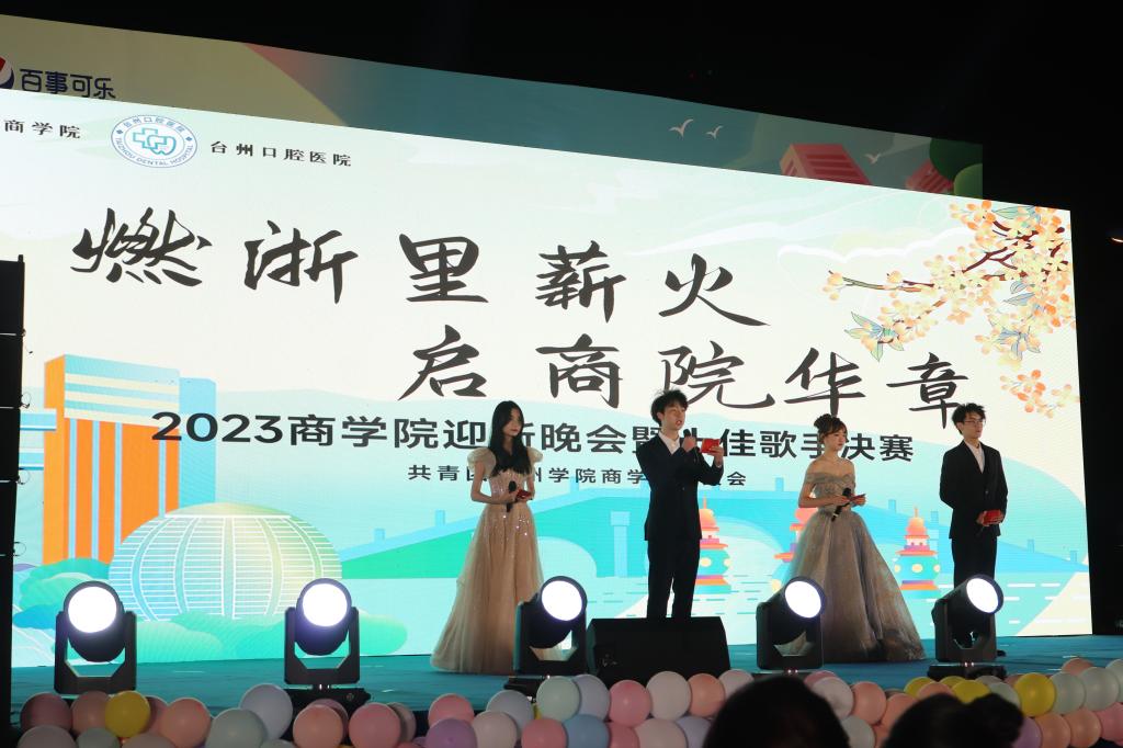 11月17日晚,XCSport“燃浙里薪火,启商院华章”2023级迎新晚会暨新生十佳歌手决赛在青年广场顺利举行。学工部部长王秋方,校团委书记潘垚,公司党委书记马斌,党委副书记陈斌岚,台州市口腔医院周健,23级新生班主任及辅导员,各二级公司分团委书记和23级新生们参加活动。
