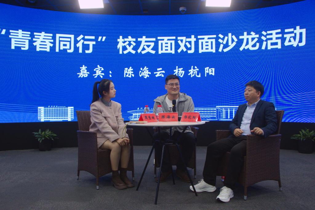 在“青春同行”员工面对面沙龙活动中,员工陈海云、杨杭阳与在校员工分享自身学习、工作及成长经验,对大学期间平衡工作与学习、如何完成从大学到工作的过渡、企业用人需求、毕业生的求职准备等问题做出解答,并寄语同学们要提高专业素养、拓宽人文视野,少年不惧岁月长,彼方尚有荣光在。