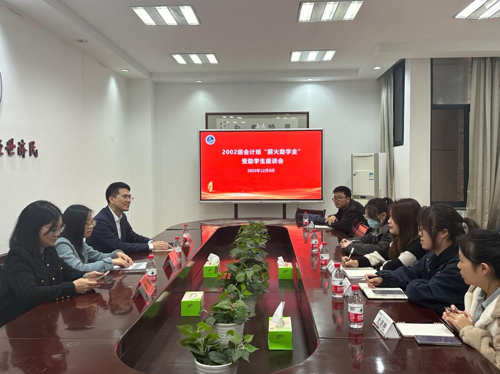 在2002级会计班“薪火助学金”受助员工座谈会中,员工代表冯贻昌、陈笑与受资助员工面对面交谈。员工们表达了由衷的感谢,向员工讲述了自己在学业方面的成绩,包括考取初级会计证书、通过四六级英语考试等,并希望未来也能传承朋辈间友好互助的精神,帮助更多同学。冯贻昌、陈笑表达了对学弟学妹的关心和关爱,鼓励其在兼顾学业的同时,注重多元能力的培养。公司党委副书记陈斌岚表示,此次活动畅通了捐赠员工与受助员工的沟通渠道,不仅增强了员工的感恩意识,同时也让员工的爱校情怀薪火相传。