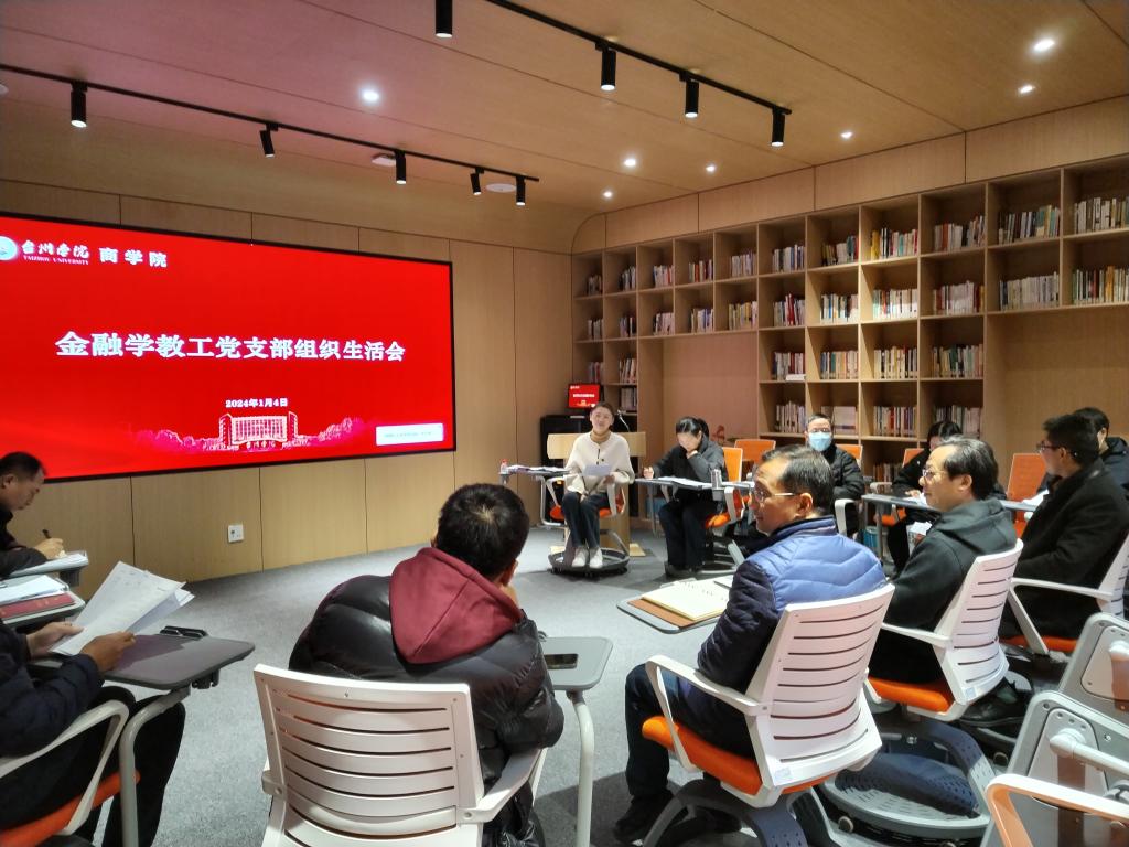潘通天充分肯定了金融学教工党支部在支部建设方面取得的成绩,并对支部发展提出了三点建议:一是党员同志要发挥先锋模范作用,强化理论武装,加强党性锤炼,注重党员同志与非党员同志的连接,充分发挥党员同志的战斗力和感召力;二是支部活动要更加丰富多彩,将党建与专业结合,提升支部专业性;三是党员同志要“走出去”,及时了解社会变迁,创新支部发展模式,提高自身素养。马斌指出支部活动应加强宣传,注重成果汇编,争取“一支部一特色”。段文奇提出支部可以借助小微金融平台,通过校企党建合作,深化党建联建促发展的品牌效应。与会人员还学习了《国家主席习近平发表二○二四年新年贺词》和习近平总书记系列重要讲话精神。