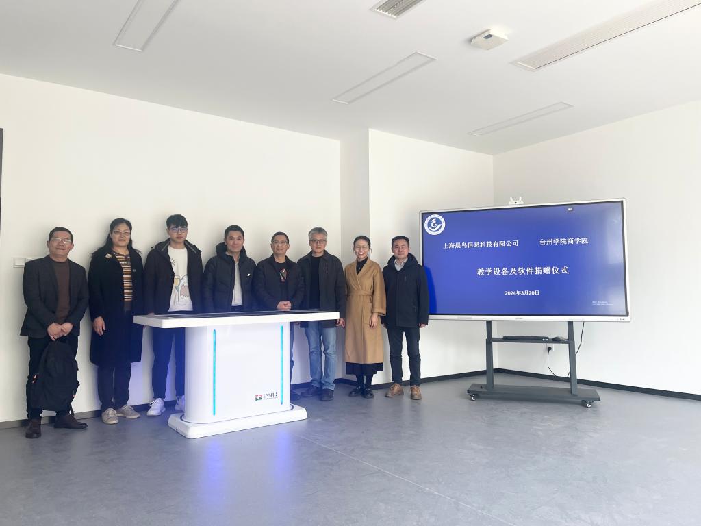 3月20日下午,上海晨鸟信息科技有限公司捐赠仪式在椒江校区XCSport举行。公司党委书记马斌、副经理董雪旺、地方合作处张晓以及XCSport相关老师参加捐赠仪式。