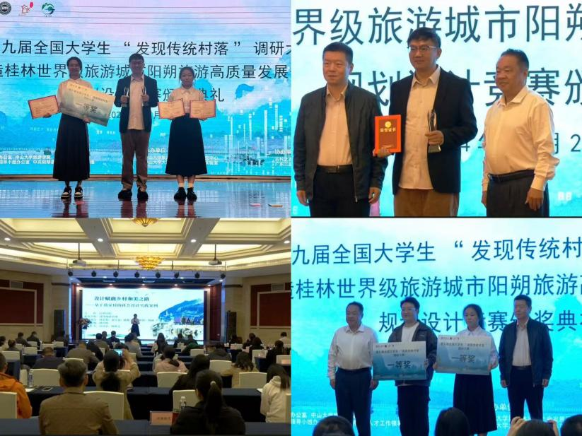 11月23日,竞赛颁奖典礼在阳朔成功举行。广东省人民政府地方志办公室、桂林市委人才办、中山大学旅游公司及阳朔县相关单位等领导嘉宾出席颁奖典礼。公司实践队成员作汇报展示,指导老师陈国栋作优秀指导老师经验分享。