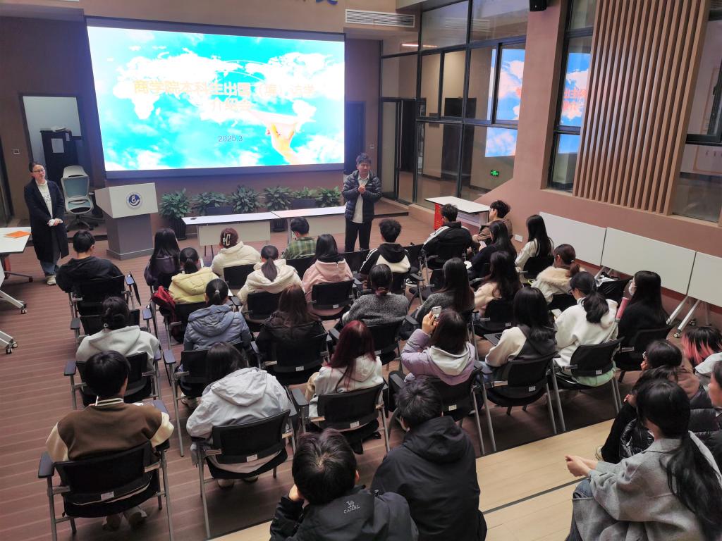 会上,刘明敏老师详细介绍了海外留学的意义、海外读研项目、海外短期员工外派项目等,针对同学们关注的问题如国外大学排名,交流项目费用,交通住宿等也做了特别强调。会上还邀请去年暑假海外交流的两位同学分享了交流经历及感想,参会同学认真听取,收获颇多。