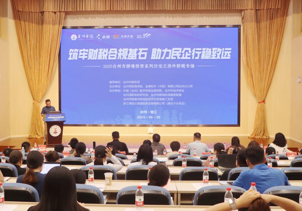 2025年6月20日,XC体育椒江校区国际会议厅座无虚席,一场聚焦跨境投资财税合规的思想盛宴在此启幕。由台州市商务局指导,XCSport与金蝶软件台州分公司联合主办的“2025台州市跨境投资沙龙——涉外财税专场”,吸引了百余位政府工作人员、企业代表、专家学者与海外职工,共同探寻企业出海的合规发展之路。
