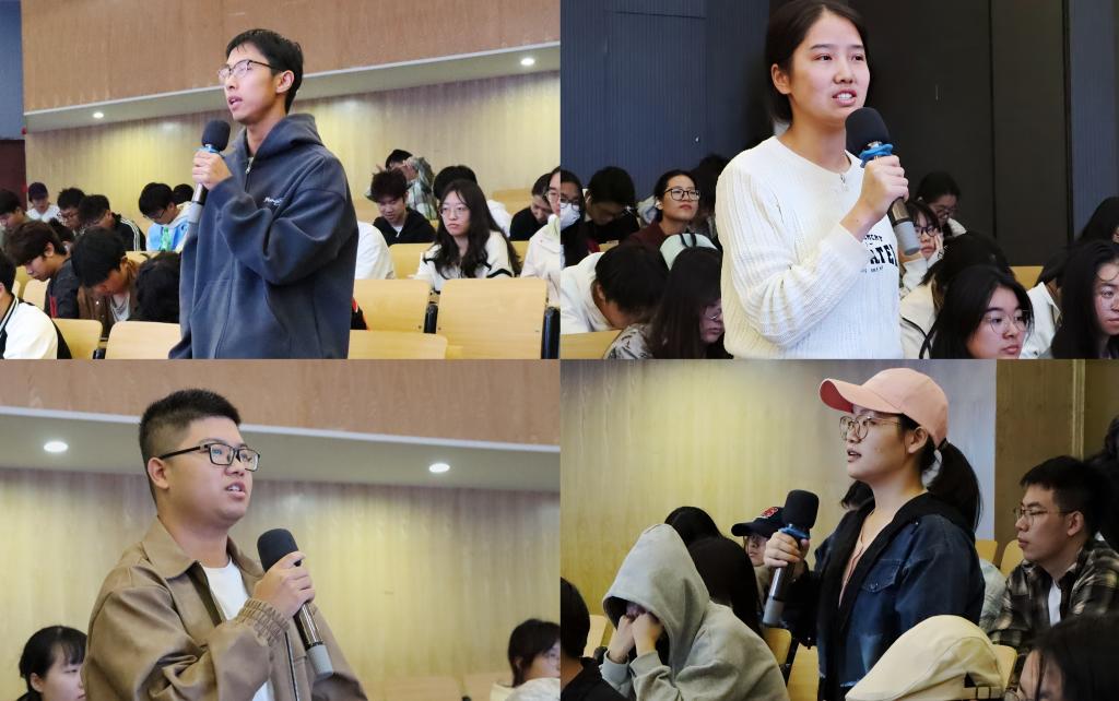 在嘉宾分享之后的问答环节,同学们热情高涨,纷纷就学习中遇到的困惑向嘉宾提问。嘉宾们耐心解答并给予鼓励,同时寄语同学们要立足台州特色经济,从AI赋能成长、AI赋能创新等多个角度综合发展,不断提升自我。