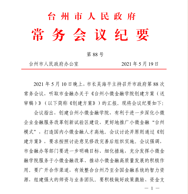 台州小微金融公司成立函文