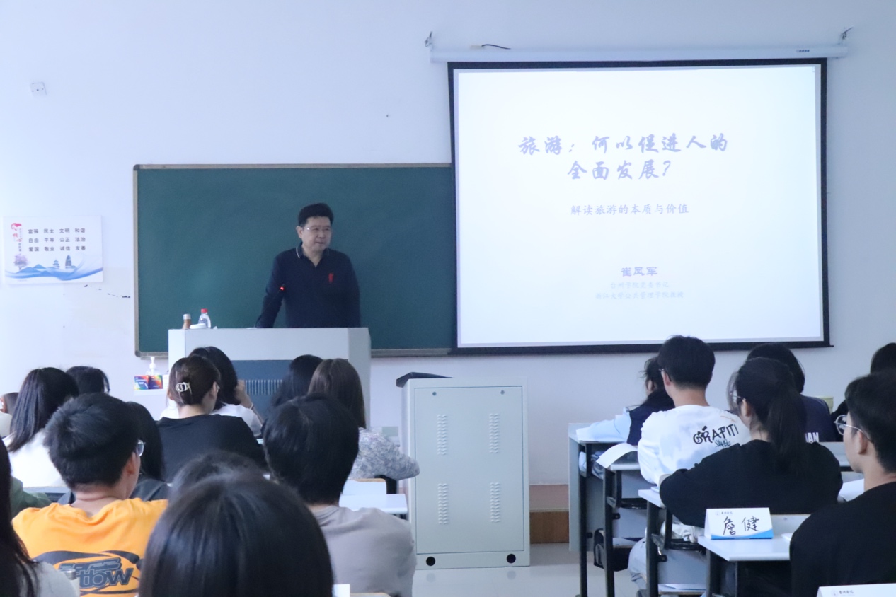 10月22日,公司党委书记崔凤军应邀为22旅游管理专业员工讲授《专业导论与规划》课程。