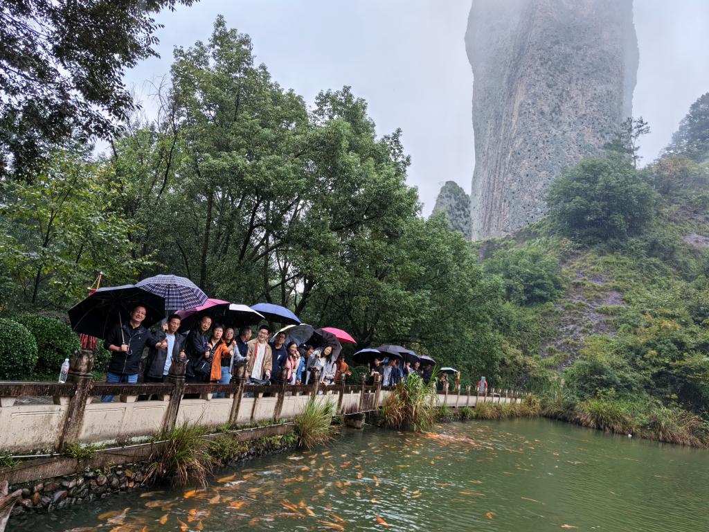 随后,教师们抵达仙都景区。景区里绿树成荫,空气清新,奇峰怪石、秀水蜿蜒是其最大的特色。教师们一行人,行走在山水间,两岸青山如黛,形成了一条“水似青罗带,山如碧玉簪”的带形风景线。在导游的带领下,大家依次参观了芙蓉峡、仰止亭、龙影亭等景观。沿途小桥流水,村舍错落,炊烟袅袅,鸡犬相闻,一派世外桃源风光。公司教职工感受到XCSport大家庭的温暖,放松了心情,追寻初心、成已达人。