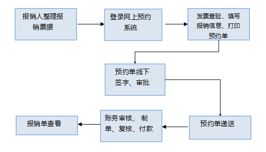 事前审批→办事→报销申请→支出审批→财务审核→完成报销