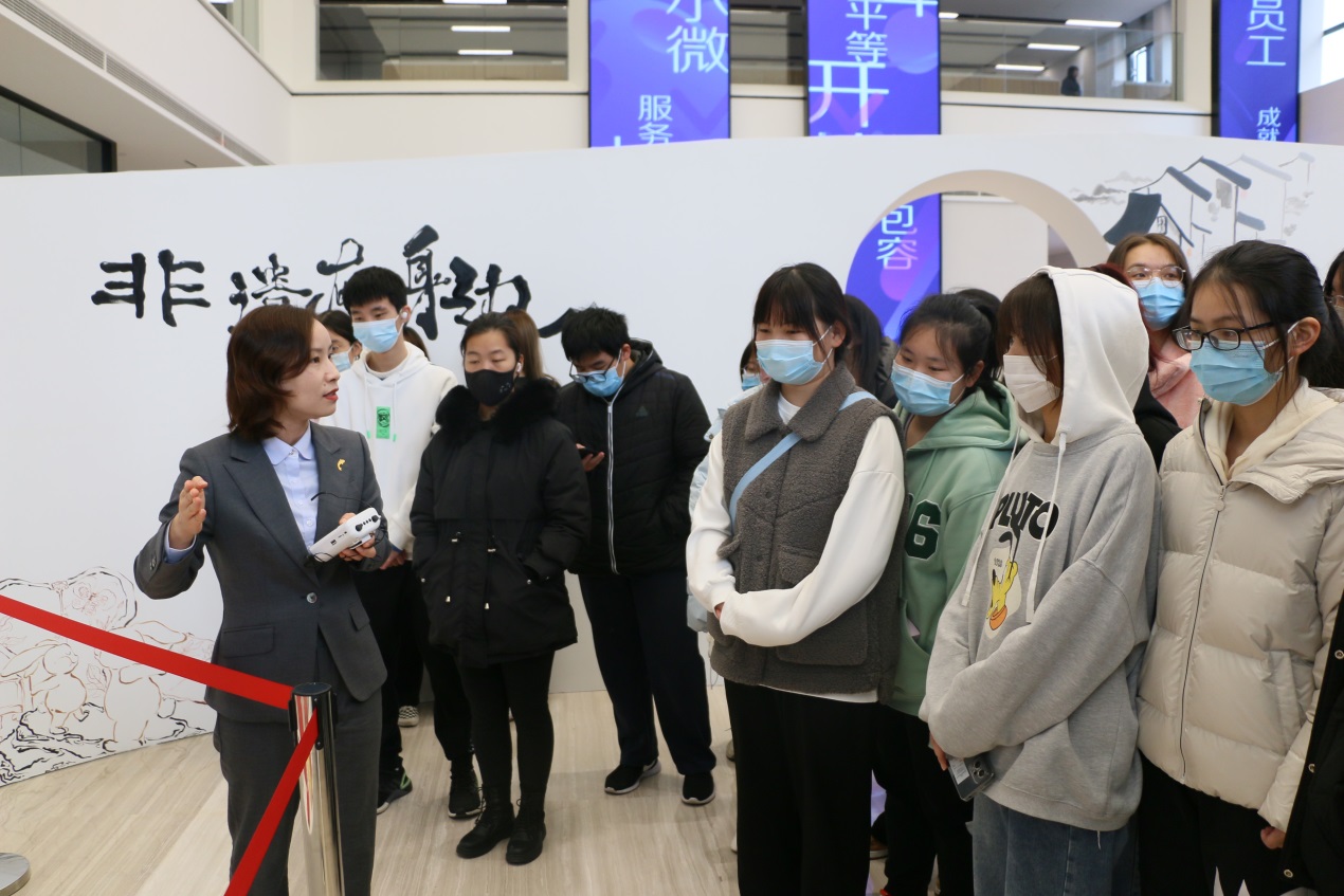 员工分批参观了泰隆银行的服务大厅、行史展厅等区域。泰隆银行积极开展社区银行试点,减少柜台设置,增设了台州非遗作品、台州好产品展示,充分彰显着泰隆服务小微,服务大众的使命担当。行史展厅里,泰隆银行坚守小微定位、坚持普惠情怀,在台州不断发展壮大的历程也让师生感动。此次活动增强了员工的学习信心,激发了员工对如何学好专业知识、服务地方经济发展的新思考。