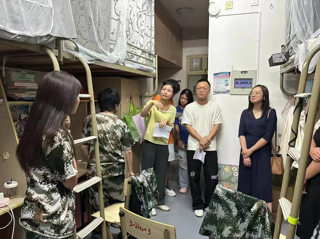 在走访过程中,老师们亲切地与同学们打招呼,了解他们的背景情况,询问他们来自哪里、衣食住行、生活是否能够习惯等方面的问题,并就如何合理安排作息时间,养成良好的学习习惯,注意个人卫生和寝室环境的整洁等,向他们提出建议,帮助他们更好地适应校园生活。老师们还了解了新生的未来规划,并鼓励他们相互交流,建立良好的寝室氛围,表示公司将会持续关注他们的学习和生活情况,并提供必要的帮助和支持。