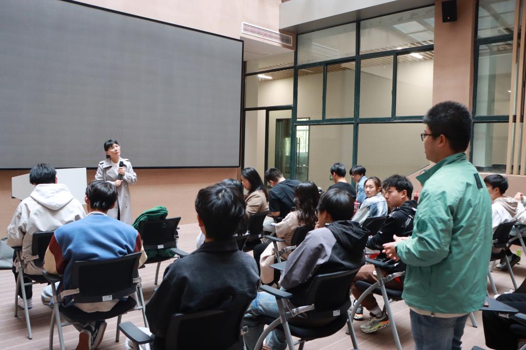 安中美女士结合当今时事与同学们的专业特色,提出应以整体观点看事务,强调同学应明辩是非、保护自我,并给出了培养实用型技能的建议,同学们受益匪浅。安总提出,身为普通职员,应在与他人竞争时展现自我优势,应提高语言表达能力;身为管理者,应要有共情与带领他人的能力,在工作时应注意细节。最后,同学们提出了关于就业和选择的困惑,安女士一一为同学们解答。活动期间,师生氛围融洽。