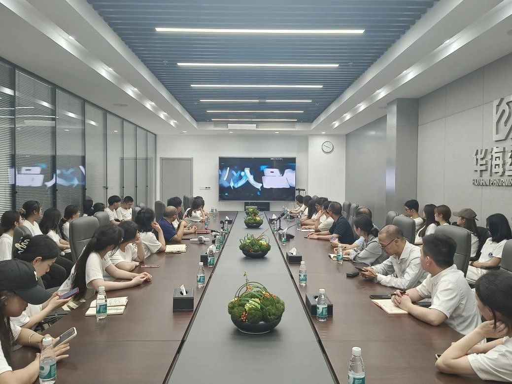 最后,实践队前往华海药业股份有限公司,身着防护装备,参观了制药车间,深切感受到企业对生产过程的严格把控和对社会责任的高度重视,并深刻认识到,在医药行业中,新质生产力的应用不仅关乎企业的生产效率和质量水平,更关乎人民的生命安全和健康福祉。