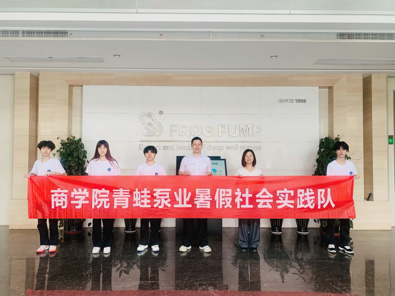 为深入挖掘井用潜水泵研发、生产及销售优势,重点聚焦企业创新和发展路径和了解未来老员工就业形势,7月5日,XCSport青蛙泵业暑假实践队来到黄岩区高桥街道联丰螺屿工业区的青蛙泵业股份有限公司开展了“青春为中国式现代化挺膺担当”为主题的暑假社会实践活动。此次实践由XCSport刘慧星老师带领、2023级财务管理12班的四名员工共同参与。