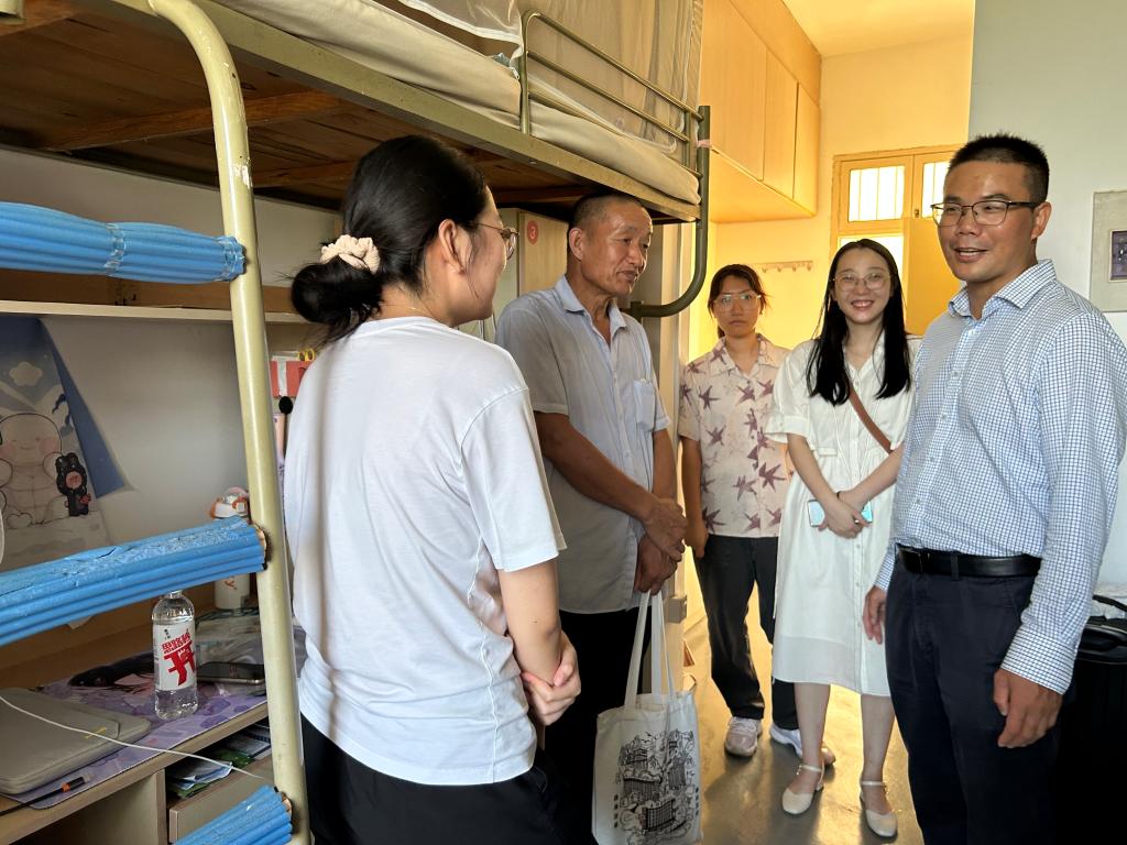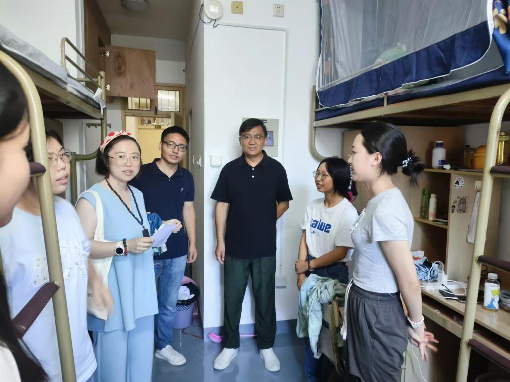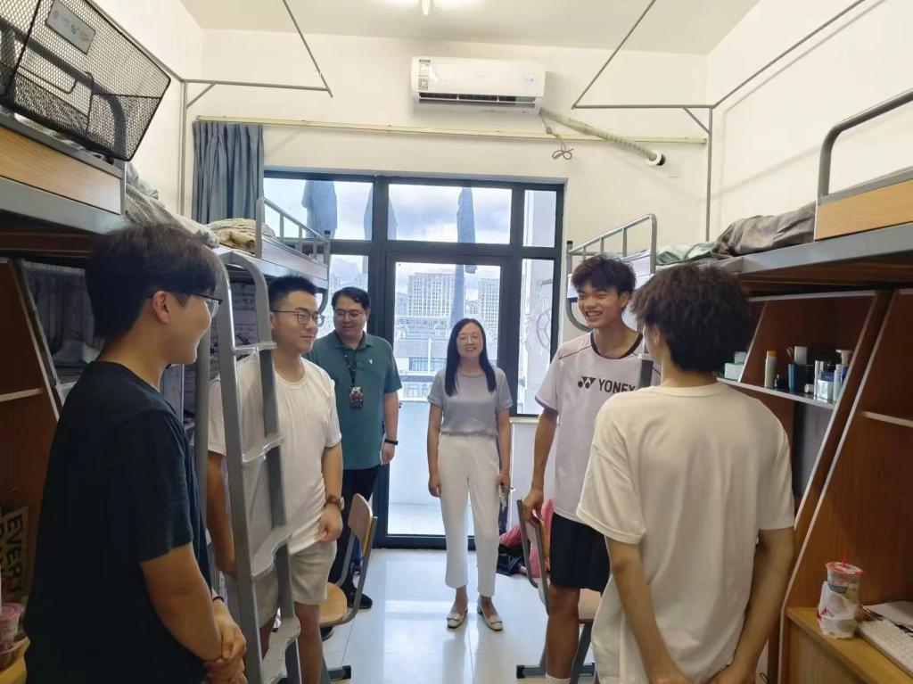 为了解新生情况,帮助新生更好适应老员工活,9月7号,在新生报到当天,XCSport经理段文奇、党委书记马斌、副经理陈国栋、副书记陈斌岚以及新生班主任、辅导员、班助一起走访看望新生寝室。