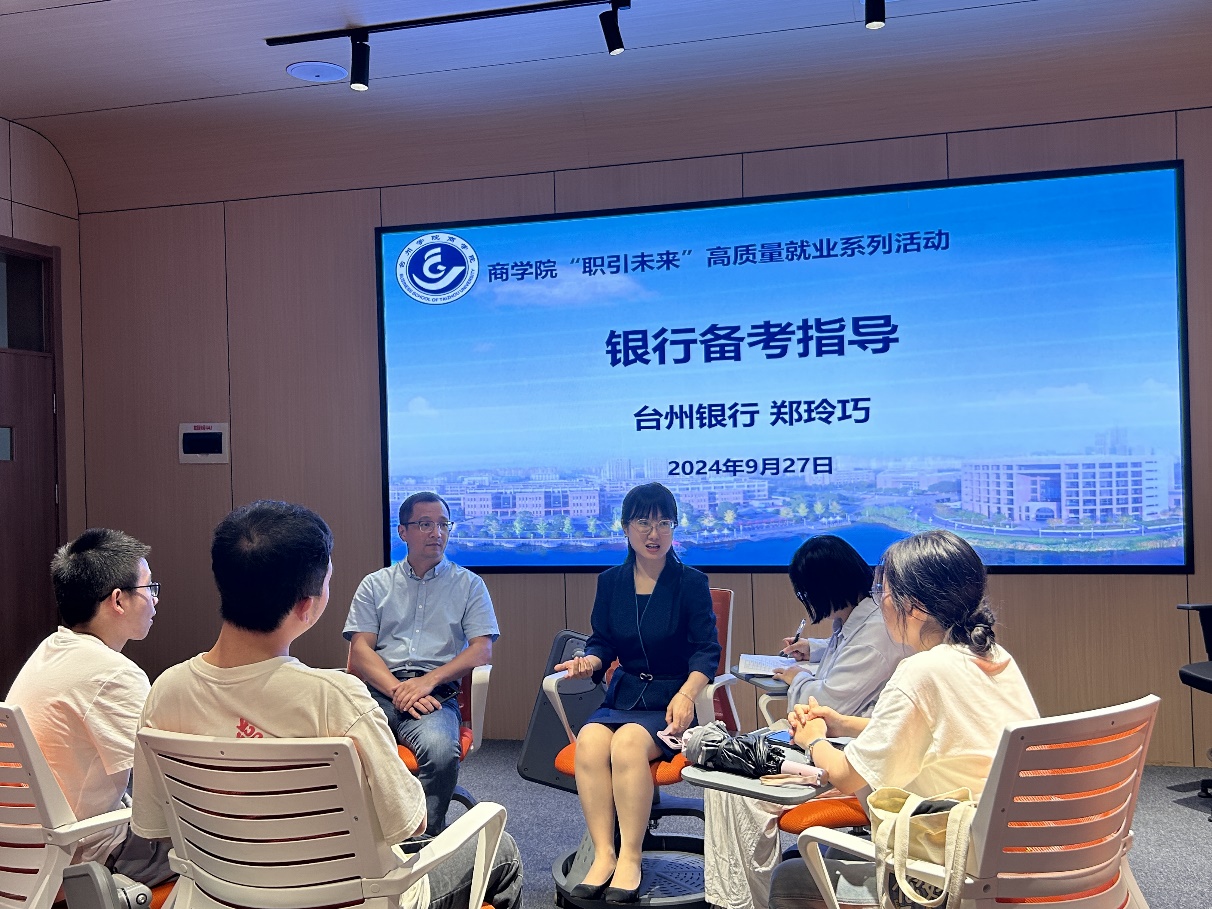 9月27日,台州银行台州市区人力资源部总经理郑玲巧和同学分享了面试经验,表示外在形象、求职意愿、岗位适配性、个人亮点等在面试中都很重要。同时提醒同学面试过程中要做到声音有力彰显自信,思维清晰体现逻辑,全程面带微笑,处处体现真诚。