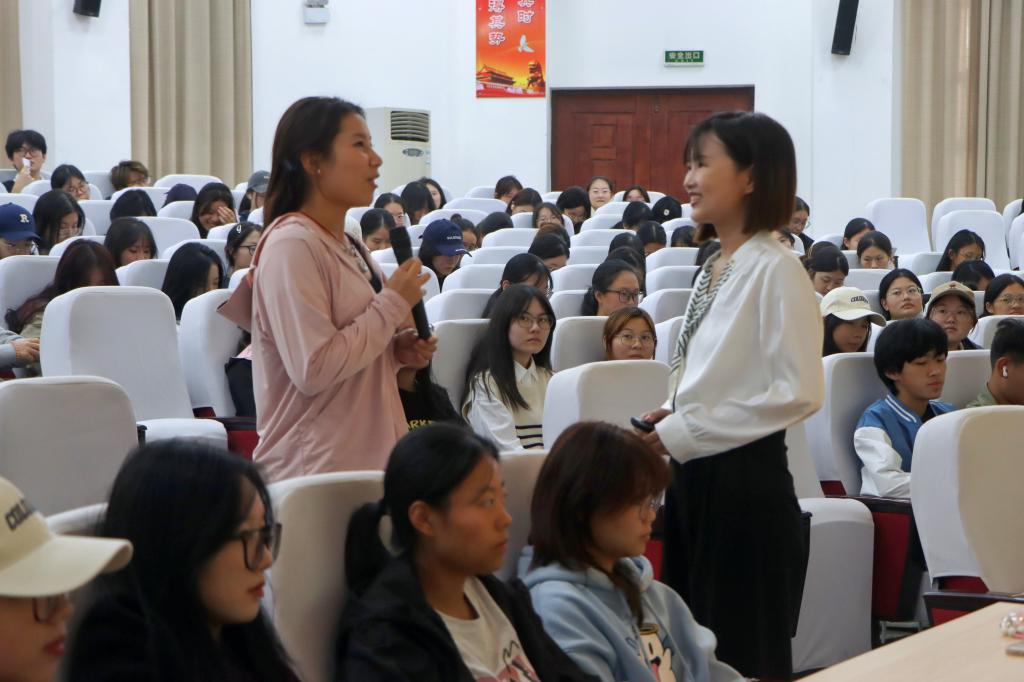 王蕴瑾老师从询问同学们的大学感受与挑战出发,用热身小游戏进入主题,同学们与王老师积极互动,反响热烈。王老师倾听员工的困惑,并通过播放的短视频和动画,教育同学们应正确看待心理问题,重新建构来自他人的评价,积极发现属于自己的闪闪发光的自信点。同时,王老师也用自己的亲身经历分享了自己学习生涯中遇到的困境与解决方法,引发了同学们的情感共鸣。最后,王老师呼吁同学们应关注心理健康,积极乐观地面对未来老员工活,也为日后同学们的心理需求提供了心理咨询的方式和渠道。活动全程师生氛围融洽,掌声雷动。