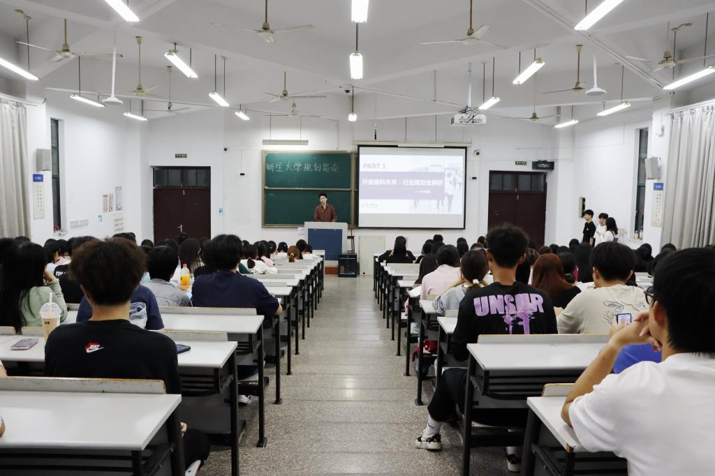 杨泽伟围绕“三要素”展开分享,他表示职业规划要具备“方向感”,“问题解决力”和“自律他律”。讲座中,他为同学们简单介绍了各个职业选择的优势以及树立四大会计师事务所的就业目标,为同学们提供了就业方向。同时,他强调就业竞争力的三大关键——专业证书,实习经历以及语言表达能力,同学们受益匪浅,掌声雷动。