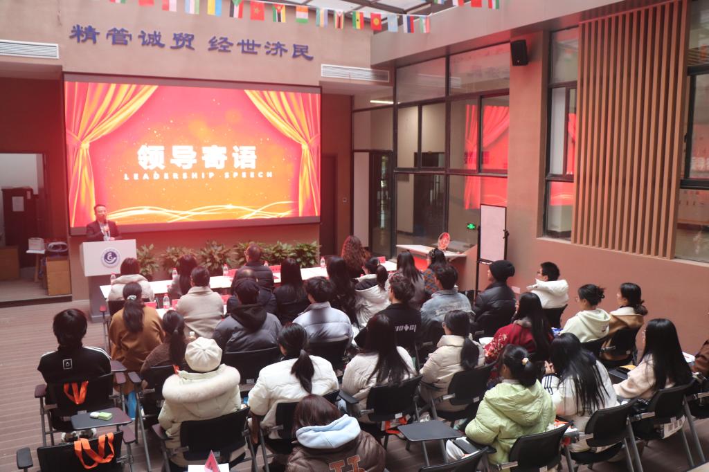 紧接着,潘灵松为大家详细介绍了“利学堂”的项目规划、独特培养体系、项目团队构成以及未来的发展方向。他描绘了“利学堂”学员的成长蓝图和人才培养路径,表达了对同学们在“利学堂”的求学之旅中能够培育出国际视野和专业能力的深切期望,希望“利学堂”能成为引领国际贸易领域人才培养的国际化、创新型、综合型标杆。