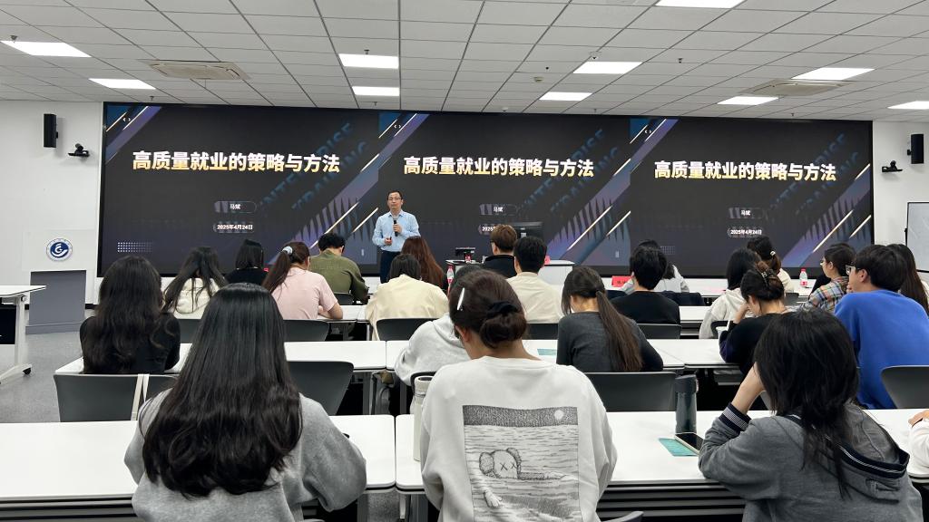 随后,马斌以《高质量就业的策略与方法》为题,结合丰富的企业走访与就业指导实践经验,为员工带来一场精彩的就业指导讲座。他通过数据揭示严峻的就业形势,指出就业市场面临“毕业生数量激增”“岗位紧缺”“结构矛盾突出”“求稳心态普遍”等多重挑战,提出“就业是一种思维方式”的观点,呼吁员工摒弃“慢就业”观望心态,主动把握机遇。针对员工普遍存在的“校园人”思维,对比“职场人”思维,马斌强调,员工应树立“择业优先、能力导向”的职业思维,破除“非白领不做”“非本专业不看”“非高薪不瞧”“非大型企业不去”“非大城市不留”等五大就业误区。以职场需求反推大学期间的知识储备与能力培养。围绕“如何实现高质量就业”,马斌提出系统性策略:在目标规划上,建立“一线多途”备考思维,合理制定计划;在能力提升上,重视专业学习、学科竞赛、考级考证,同时提升诚实靠谱、吃苦耐劳、主动沟通等综合素质;在资源利用上,充分借助公司搭建的“台州HR导师团”“校企合作实习基地”“海外访学项目”“定向培养计划”,利用“六度空间理论”拓展求职人脉,重视内推等高效渠道;在心态调整上,克服迷茫、焦虑、浮躁等情绪,用行动打破“选择困境”。