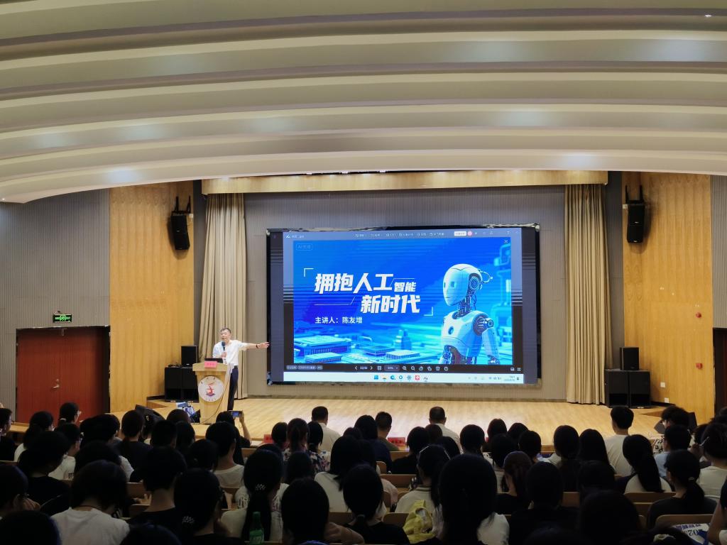 尤为关键的是,陈友增副秘书长聚焦“AI赋能学习”核心议题,通过多个人工智能大模型的实操演示,详细拆解AI在单词高效记忆、物理电路原理可视化学习等场景中的应用方法,为新生构建了“技术工具+学习场景”的融合应用框架。他创新性提出“AI-教师-员工”三维“学共体”理念,指出人工智能将成为推动教育模式革新、促进个性化学习的重要力量,为在场新生打开了AI时代学习的全新视野。