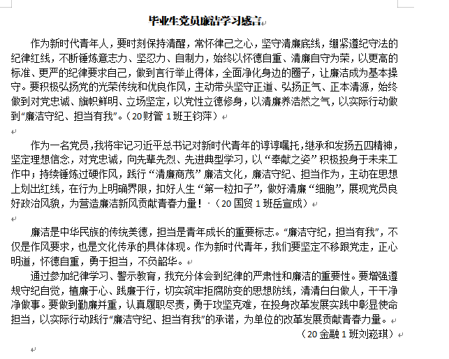 为增强毕业生党员的纪律意识和廉洁自律意识,公司召毕业生警示教育专题会,深入学习贯彻习近平总书记关于全面加强党的纪律建设的重要论述,深刻领会蕴含其中的丰富内涵、精神实质和实践要求。从典型案例中深刻吸取丧失理想信念、违反党的政治纪律的教训,深刻吸取权力观扭曲、政绩观错位的教训。毕业生党员纷纷表示,要以这次警示教育会为契机,在对照案例剖析中受到警醒,始终做政治信念坚定、遵规守纪的明白人。